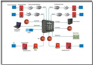 A addressable Fire Alarm system usually includes a fire alarm control panel (FACP) . FACP receives information from devices throughout the property, which is designed to detect changes associated with a fire event , including water flow or detection of smoke . A map of the building is often placed at a strategic location with the defined zones and indicators that illuminate when a zone is in an alarm condition , The main drawback is that the activated device cannot be detected, and only zone can be identified , The fire may be in only one small area , but the emergency indicators only reveal that the larger zone is in alarm , This type of system is also capable of dialing an offsite monitoring service , shutting down gas supply , turning on smoke exhaust fans , and connecting to other fire alarm panels .